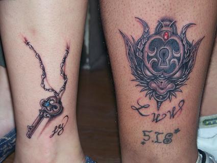 Hot Couples Tattoo DesignsL Heart, Lock And Key Tattoos